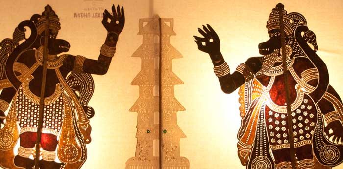 The puppet plays are based on selected verses from the famous Tamil Epic ‘Kamba Ramayana’. The language used is a dialect of Tamil with an admixture of Sanskrit and Malayalam words.While formerly the puppets were made out of deer skin